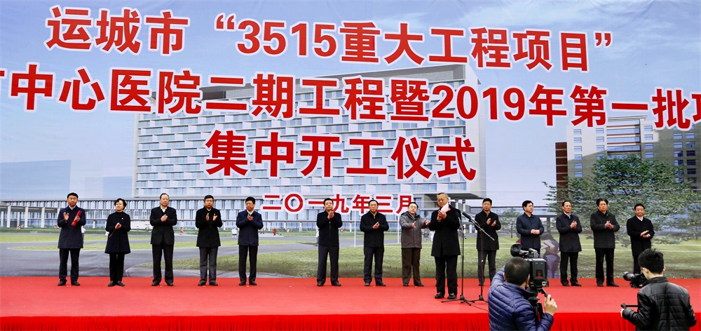 2019年3月2日上午,我公司承建的“運城市中心醫(yī)院二期工程”開工儀式隆重舉行。市委書記劉志宏等“四大班子”領(lǐng)導(dǎo),中心醫(yī)院黨委書記、院長高萍,公司總經(jīng)理王哲波,市委市政府相關(guān)部門負(fù)責(zé)人及各縣(市、區(qū))委書記、縣(市、區(qū))長等出席開工儀式。