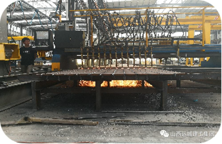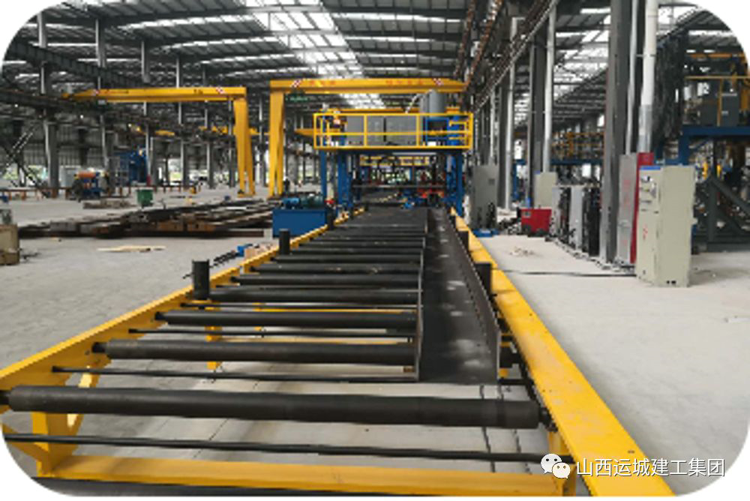 切割好的板材通過組立機兩端點焊初步成型為H型鋼,由輥軸輸送準備進入下道工序---組焊。